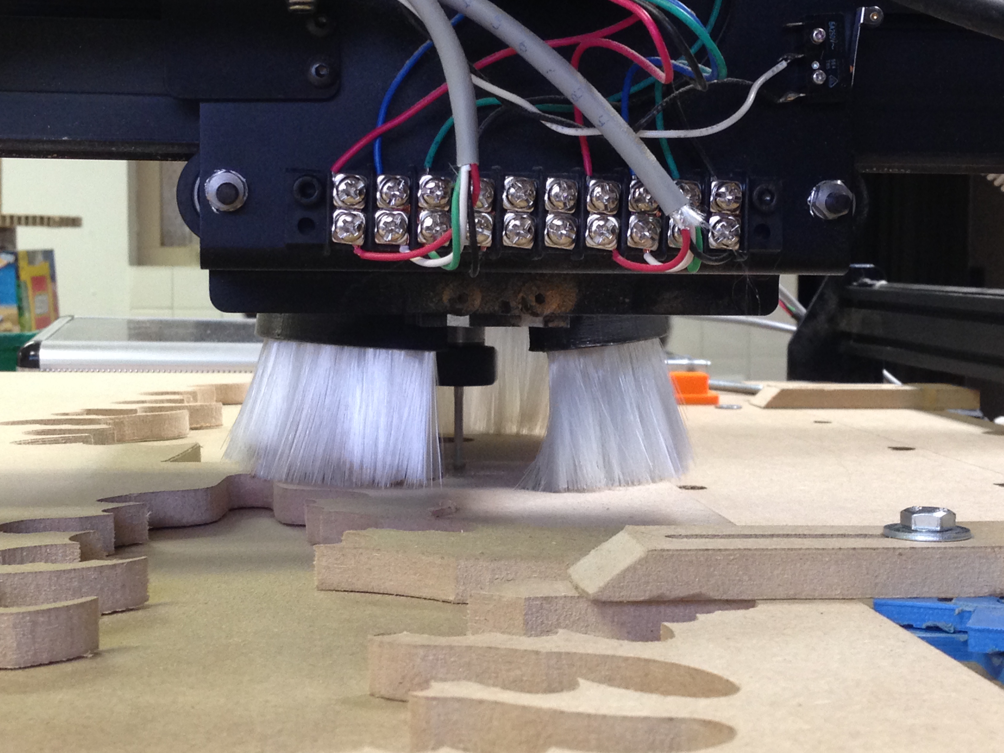Aujourd’hui s’est déroulé un atelier libre ou nous avons mis en place le système d’aspiration pour la CNC X-carve. Dessiné par Naimeric, imprimé par Henry, limé par Bernard, c’est dans une joyeuse ambiance collégiale que le système a été mis en place. Et il semble fonctionner parfaitement. Fini la poussière partout dans le FabLab 🙂