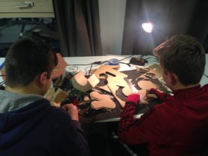 L’ambiance était chaude au FabLab hier avec beaucoup de monde et de projets en parallèle qui avançaient. Baptiste imprimait des pièces tout en prototypant des formes avec du carton aidé de Louis, alors que Hervé soudait des composant d’un petit piano musical en kit qu’il a ramené de son voyage au Japon. Henry découpait à la CNC et Baptiste / TEX continuait de régler sa grosse imprimante 3D, tandis que la fille de Némo soudait les composant d’une petite console portative.