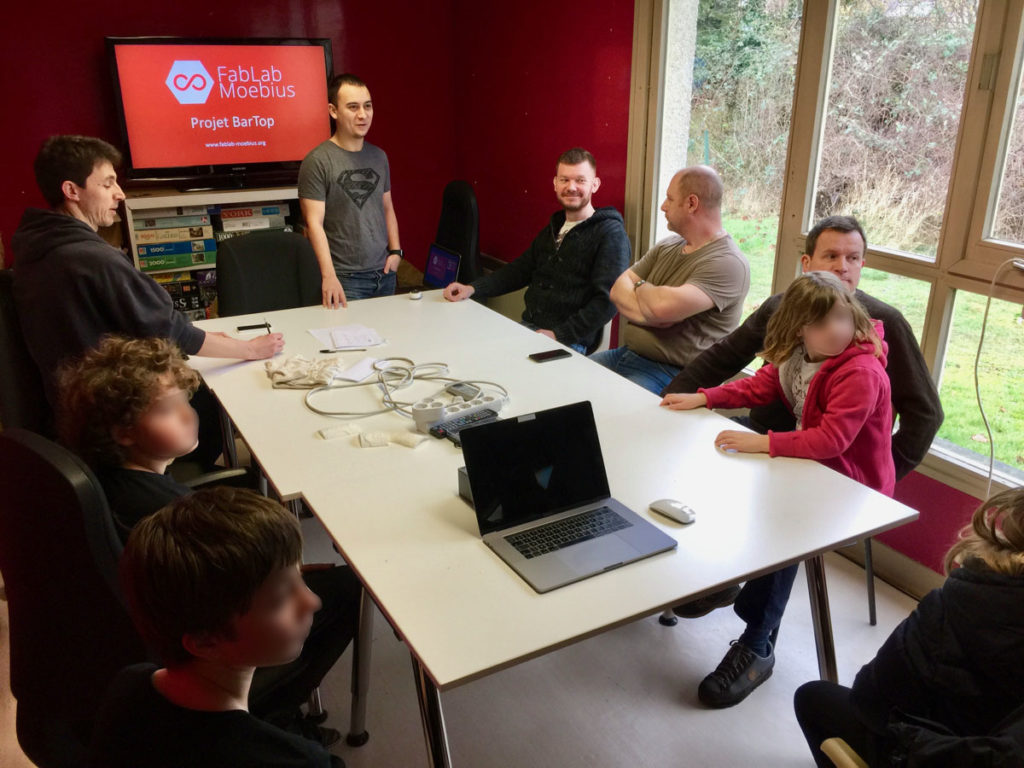 En parallèle de tout ça, hier fut le lancement du projet collaboratif du FABLab qui va consister à fabriquer complètement une console de jeu d’arcade. Louis a pu expliquer les différents éléments et comment le chantier va être divisé en différentes parties (caisson, système informatique, câblage, personnalisation). De nombreux adhérents se sont montrés intéressé et le travail va maintenant commencer sous la houlette de Louis.
