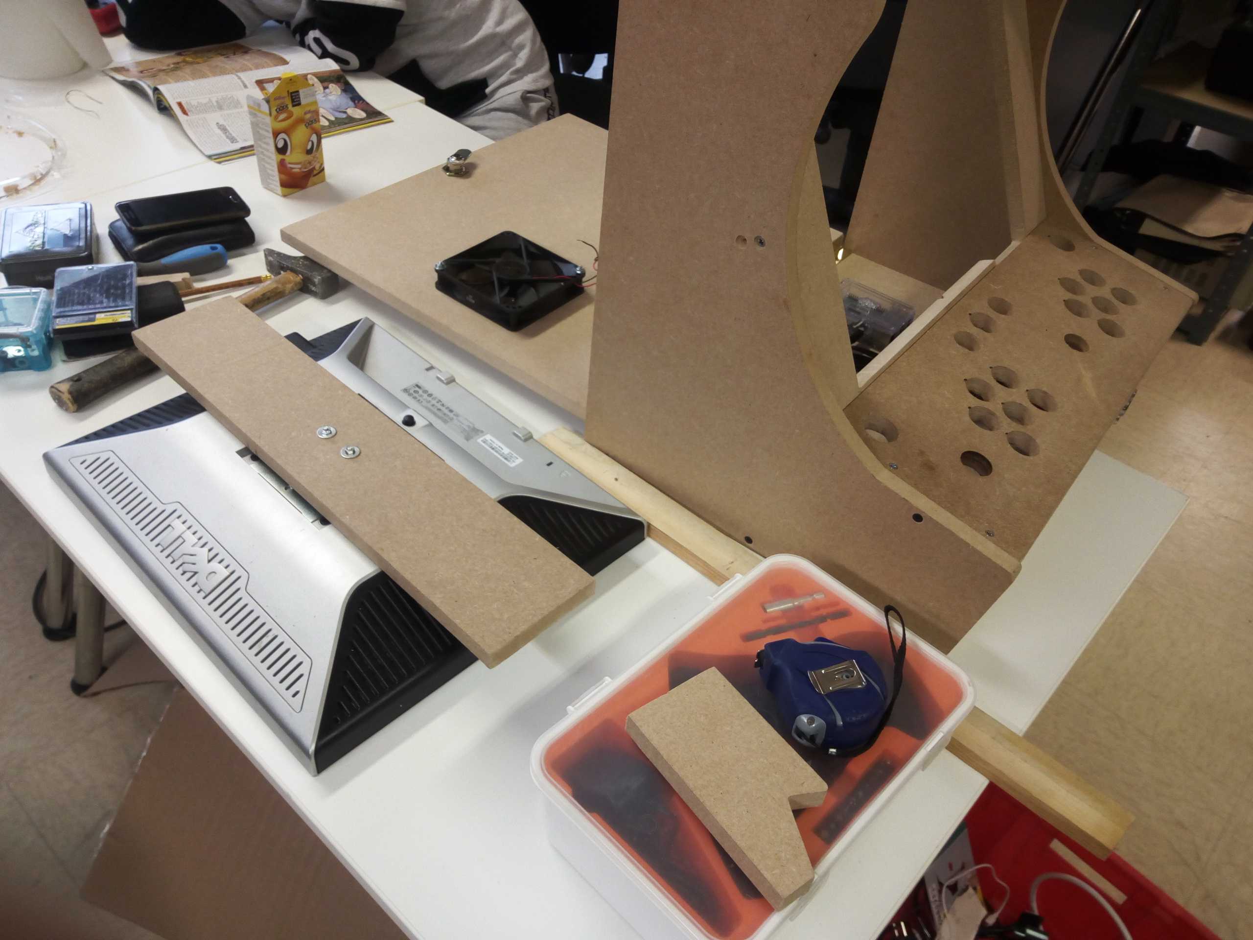 Atelier libre au FabLab aujourd’hui… Chacun vaque à ses projet et en effet le FabLab bourdonnait d’activité. Hervé avance son Bartop et a pu fixer l’écran, Louis a réparé son autoradio, Renan a monté sa nouvelle imprimante (une alphawise U20) et lancé plusieurs impression si bien que les 3 imprimantes tournaient en même temps. Clément continue ses découpes sur la Xcarve. Henry a fait du ménage coté atelier électronique et a diagnostiqué une panne malheureusement non réparable sur un micro-onde.