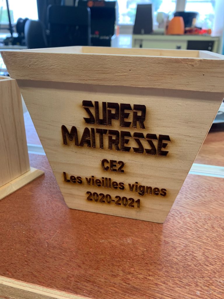Cyril a fait de la gravure et de la découpe pour faire des cadeaux de fin d’année pour la classe de Melvin…