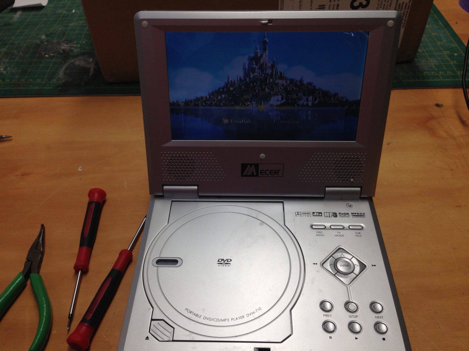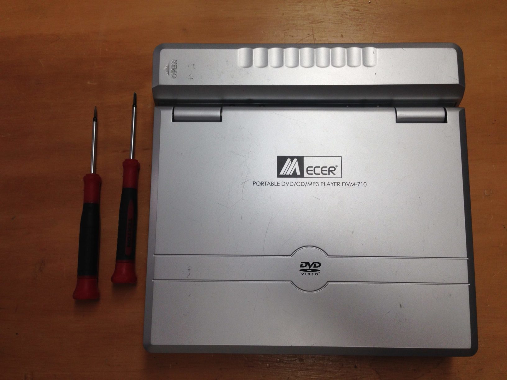 Avant notre départ aux états-unis, un couple d’amis nous ont offert un lecteur dvd portable histoire que les enfants puissent regarder quelques dvd de temps en temps. Celui-ci nous a fidèlement servi pendant des mois en particulier lors de nos trips en camping dans les parcs nationaux. Après plusieurs fois où Guillaume, notre petit dernier, l’a jeté par terre, celui-ci commence a donner des signes de faiblesse puis cesse de marcher. Les symptomes: l’écran s’allume mais le disque ne se lance pas. Le dvd a l’intérieur n’a pas l’air de se mettre a tourner. J’ai le sentiment que l’appareil ne s’initialise pas. Se pourrait-il qu’un moteur soit défectueux ?