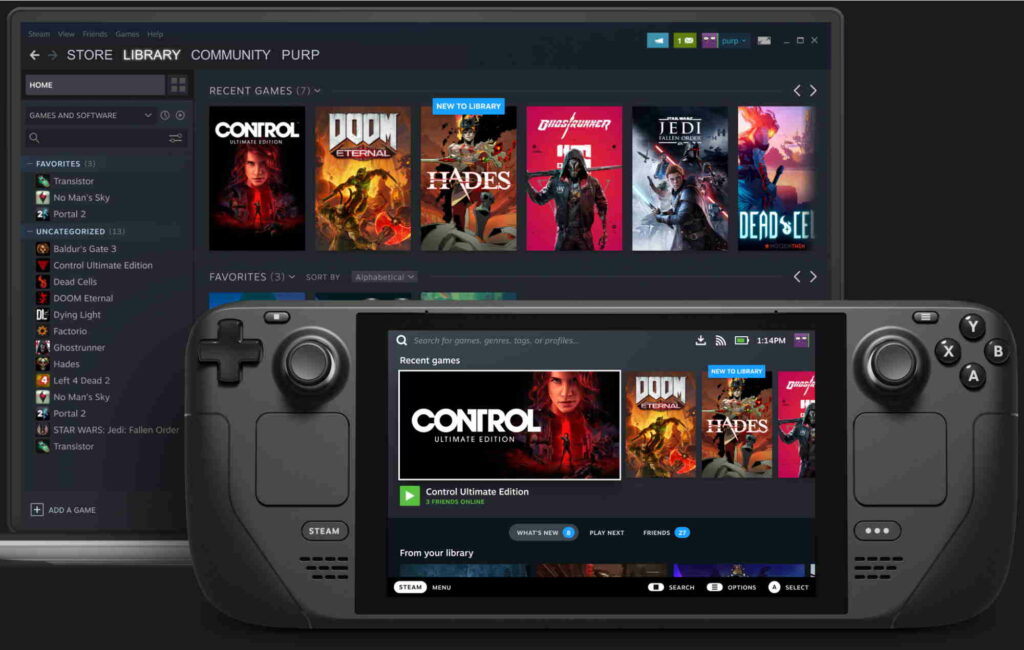 Et la Steam Deck est vendue comme une « console PC portable » qui fait tourner quasiment tous les jeux du moment… Dans la tête des gamers PC = Windows. En février 2022 les premières unités sont livrées et c’est le bonheur, ce qui avait été promis est même en dessous de la réalité : de nombreux jeux tournent plus vite ou mieux que sur le bon vieux PC de bureau ! Emoi chez les Gamers…
