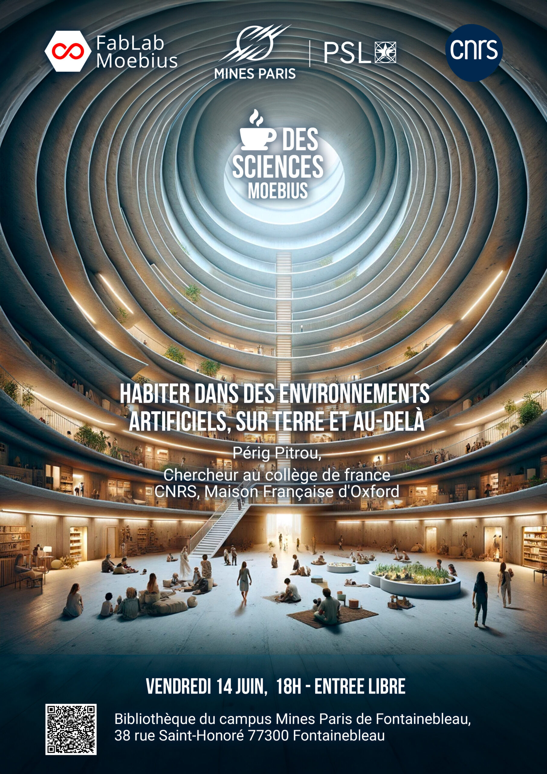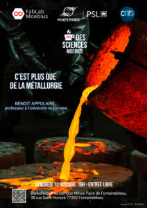 Tous les mois, le Fablab Moebius organise un café des sciences en partenariat avec la Bibliothèque de l’Ecole des Mines de Paris et le CNRS. Ces rencontres scientifiques sont gratuites et ouvertes à tous. Elles se tiennent le 2e vendredi de chaque mois à 18h au 38 Rue Saint-Honoré à Fontainebleau. Le format se présente sous la forme d’une heure d’exposé scientifique par un chercheur sur un sujet précis suivi d’un débat avec le public.